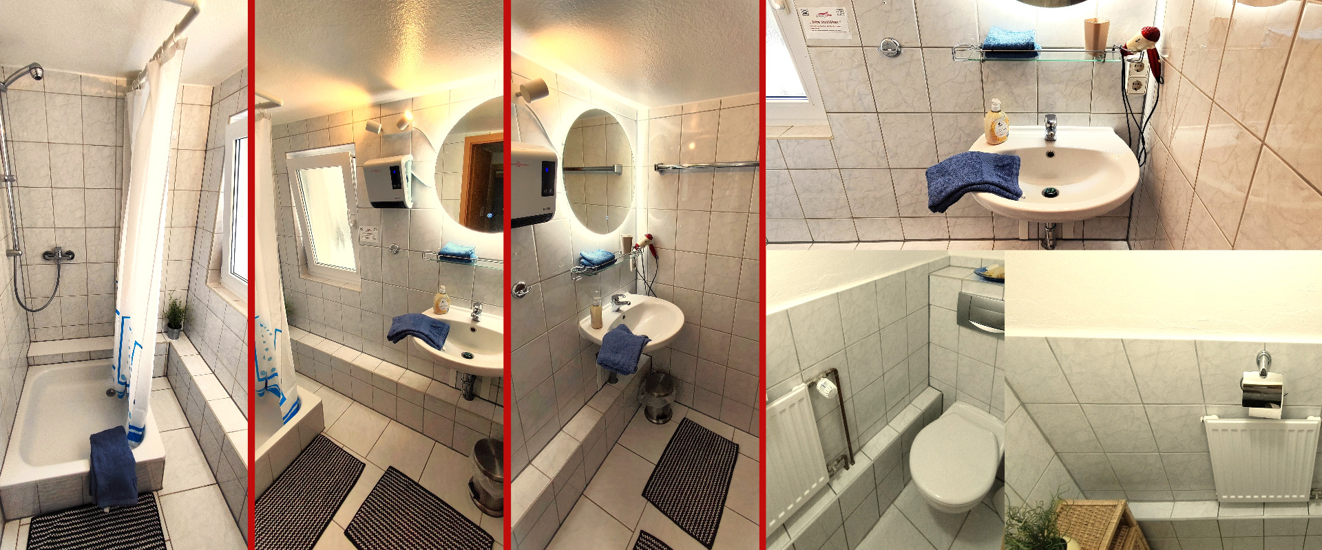 Unser Bad im Apartment Hintertaunus ist wie folgt ausgestattet: Dusche, Toilette, Handwaschtisch, Föhn, Handtücher, Badetücher (auf Wunsch).